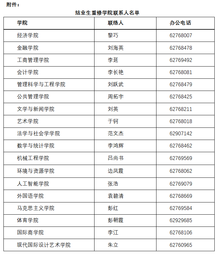 附件:结业生重修公司联系人名单