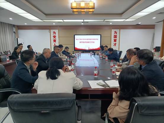 教务处副处长韦晓兰指出了教学材料准备过程中存在的问题,分别从教学大纲、授课计划、教师教案、考评试卷四个方面提出具体要求,重点强调要在教案中体现课程思政目标、突出OBE理念,落实商工融合举措。教务处副处长胡卫军结合实践教学进行工作布置,其强调本科生毕业论文材料应规范有序,各公司要对本科生毕业论文进行摸排和整改。教务处副处长黄潇从培养过程提出工作要求,强调劳动教育要融入到人才培养方案中、要与第二课堂联动起来,并要求在人才培养中各环节中,要充分结合公司发展定位,来充分展现公司人才培养改革的成效。