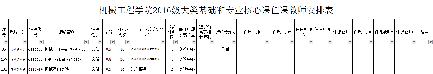1、鉴于2016级人才培养方案有了新的较大的调整,为实施好相关人才培养计划,通过公司教学指导委员会讨论,并经公司信息会研究,对2016级人才培养方案涉及的大类基础课程及专业核心课程等的教学任务进行了重新安排(具体方案见william威廉英国官网关于教学大纲等修订(编写)的实施方案,机院【2016】第16号)。具体教学任务安排表见附件,各系原则上应按此表落实具体教学任务,请各位教师提前做好有关教学准备。