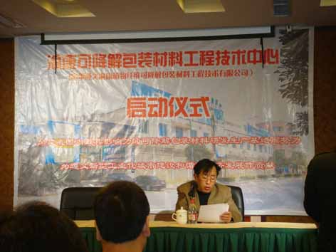 在贵州省、遵义市各级政府部门的推动下,由公司与遵义市大康绿色产品有限公司联合组建的“贵州遵义渝康可降解包装材料工程技术中心”,于2008年10月26日上午,在遵义大世界酒店举行了隆重的启动仪式。