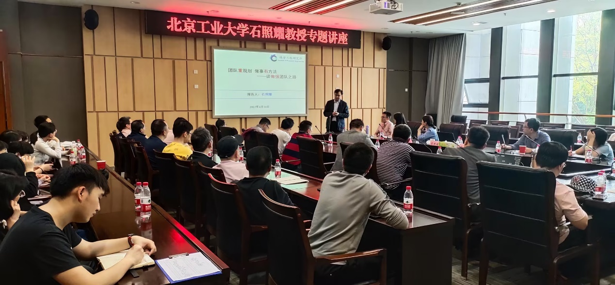 石照耀教授围绕科研团队建设,从个人经历、团队建设和员工培养等方面,详细介绍了所创建的团队——精密工程研究所二十年来的建设历程。在个人经历方面,石照耀教授介绍了自己由机械工业部成都工具研究所副总工程师调入北京工业大学之后的科研现实困境与突围之道。在团队建设方面,石照耀教授从“怎么建团队”和“怎么带队伍”两个层面,介绍了团队建设与管理的先进经验。在员工培养方面,石照耀教授介绍了团队协作和绩效激励等方面的具体措施。石照耀教授还对参会教师提出的具体问题进行了一一解答,并鼓励各位教师结合行业发展动态和重庆市产业现状,进行科研布局与团队建设。