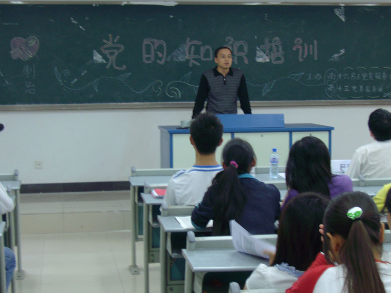 本次培训会积极响应“抓党建、促三风、建三高”学风建设的号召,对各位成员进行了深刻的思想动员大会,让同学们认识到自己已经是党员服务站的一份子,了解自己的职能和应该具有的态度。机械与包装工程公司团总支书记尹建平老师和南15栋党员服务站指导员程惠峰老师在会上讲了很多党的知识,使大家的思想有了进一步的提高.接着,站长讲话,强调大家要以“全新全意为同学服务”为宗旨,积极开展各类活动。在座的各位新成员也表现出了极强的工作热情,并一致承诺在今后的学习生活工作中做好先锋模范作用,为党员服务站展开新的一页。
