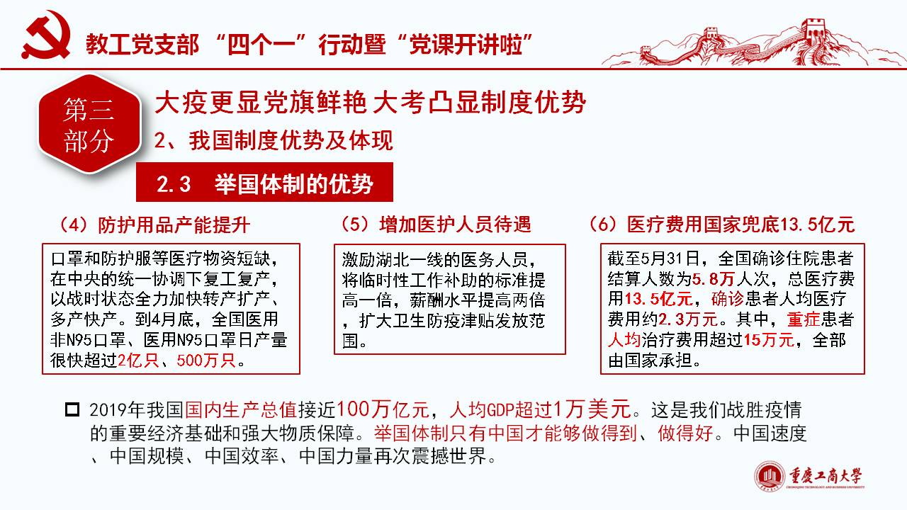 此次微党课紧密围绕习近平总书记“坚定信心,同舟共济,科学防治,精准施策”的疫情防控总要求,以及“把人民生命安全和身体健康放在第一位,坚持人民至上、生命至上,不惜一切代价维护人民生命安全和身体健康。”的重要讲话和指示精神,通过典型的事例和权威的数据对我国波澜壮阔的疫情阻击战进行回顾和解读;同时讲述了公司教工党员在员工返校复课期间的模范工作。通过将我国与西方代表国家最新疫情的权威数据对比,清楚展现我国疫情阻击战和防控战的显著成效,从而凸显党中央坚持全国一盘棋、集中统一领导疫情防控的制度优势。作为教工党员需要自觉增强“四个意识”、坚定“四个自信”、做到“两个维护”,在常态化疫情防控工作中起模范带头作用,立德树人,在课程思政环节分享抗疫思想体会。