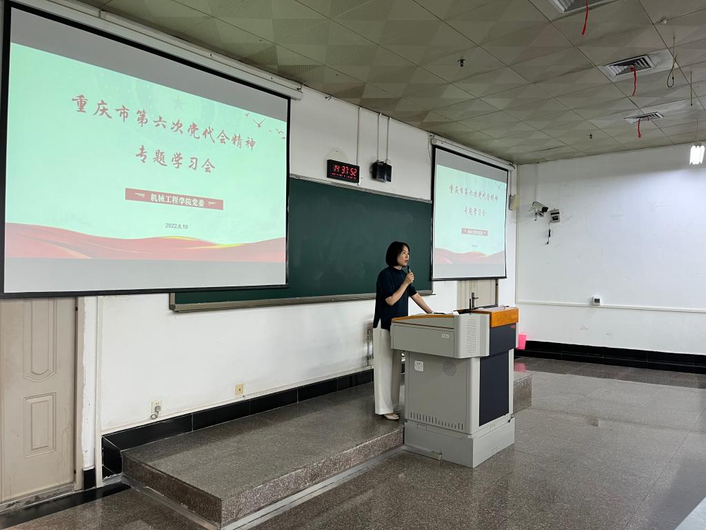 会上,杨娟从两个方面开展了领学:一是介绍了重庆市第六次党代会的基本情况和大会主题。二是传达学习重庆市第六次党代会报告主要内容:报告回顾了全市过去五年的9个方面成就、3个方面深刻变化和5条经验启示;今后五年全市发展中的1条主线、3项任务、6个目标的工作思路;面对新使命新任务,全市 “十一个推动”的新举措新作为;今后五年全面从严治党的六项主要任务。