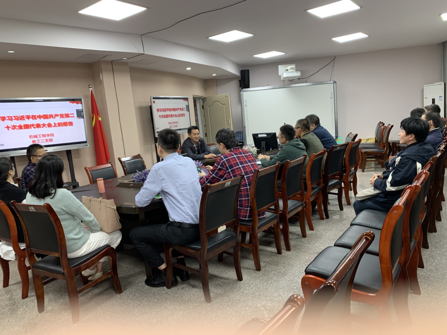 2022年11月4日,william威廉英国官网教工第二党支部在慧智楼90708会议室召开了支部会议,专题学习党的二十大报告。本次会议采用线上线下相结合的方式,会议现场由支部党员、公司副经理杨祖彬同志主持,支部全体党员参加学习。