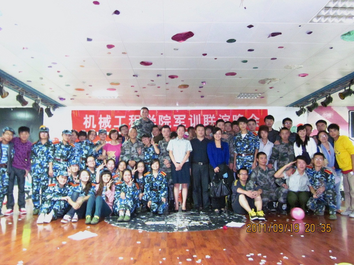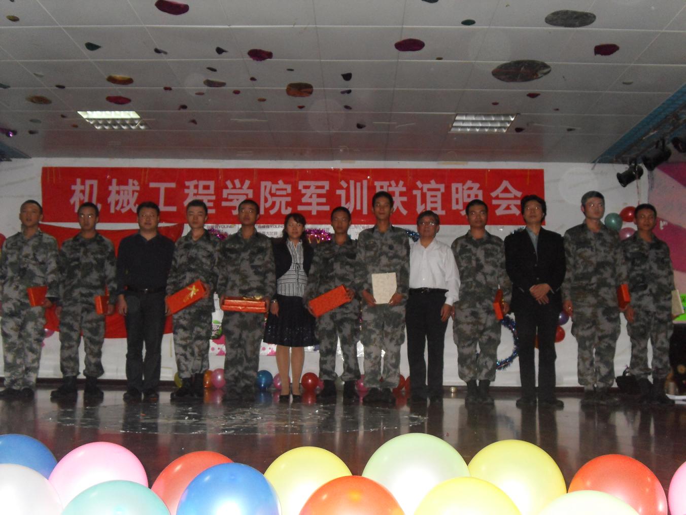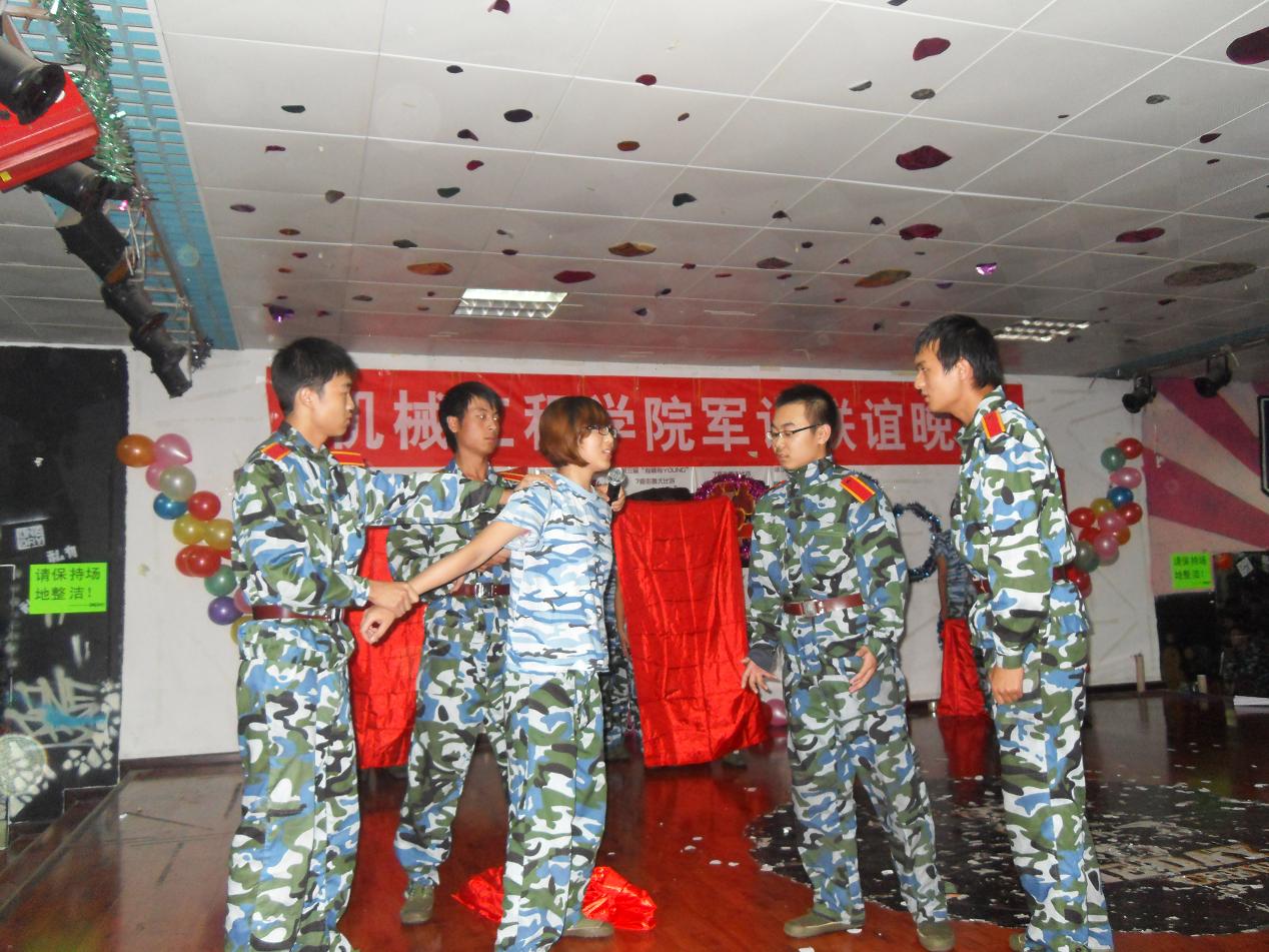 伴随着一首铿锵有力的黄河大合唱,晚会正式开始。首先,杨书记做了讲话,他对教官们在军训工作中的辛勤付出表示感谢,向军训的全体学员表示了慰问。他说,军训是老员工履行兵役的一种形式,是发扬艰苦奋斗作风和人才培养的好机会,他希望同学们能做到:1、艰苦奋斗,努力学习;2、学习教官好思想、好作风;3、认真向解放军学习纪律优良、作风严谨,为以后成才打下基础。接下来,公司的领导们为内务卫生优秀的寝室颁发了奖品。其后,怀着炽热感恩的心,公司为教官们送上了小礼物,全场响起了雷鸣般的掌声。在《红旗颂》、《血染映山红》等精彩的话剧中,我们感受到曾经流淌在这片土地上的革命者鲜红的血;在《朋友》、《讲不出再见》等歌曲中,我们互诉着与教官的兄弟情,同学们怀着满腔情感对着教官们说:教官辛苦了!在这激动的夜晚,呐喊声一波接着一波,将晚会推向了高潮。在《团结就是力量》的歌声中,晚会落下了帷幕。