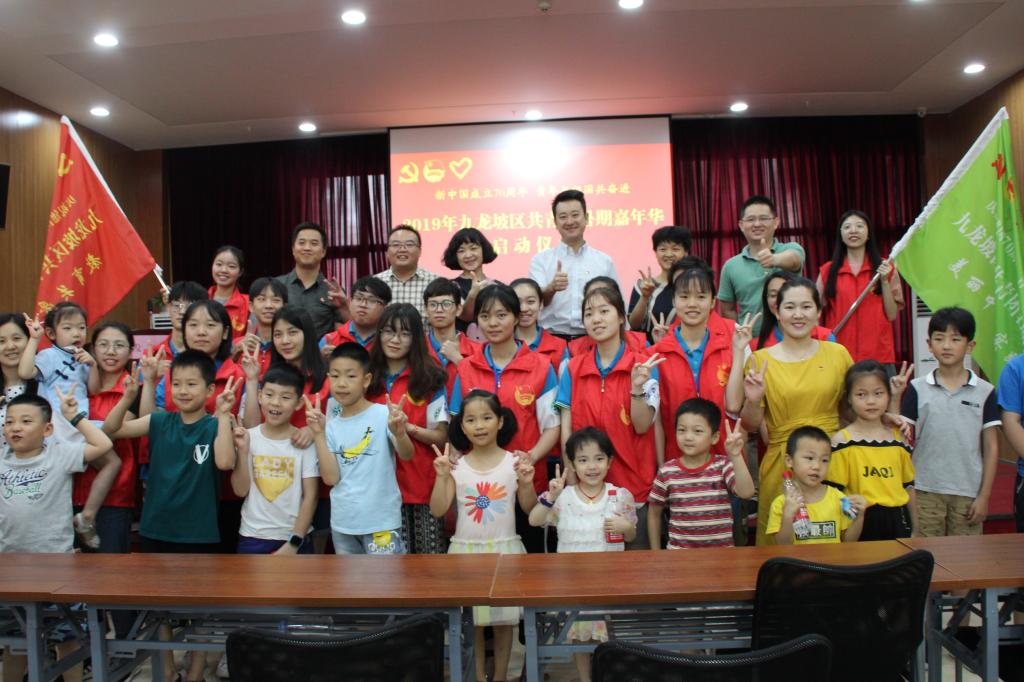 2019年7月8日-7月11日,公司志愿者在九龙坡盘龙新城社区开展了为期一周的暑期嘉年华社会实践活动。志愿者们结合本专业特色和社区需求,为社区小朋友精心准备了七彩课堂,不仅丰富了小朋友的假期生活,也提升了志愿者的综合素质。九龙坡暑期社会实践启动仪式在公司实践点举行,活动期间,团市委副书记黄永宜、校团委副书记陆嘉等慰问了公司志愿服务团。