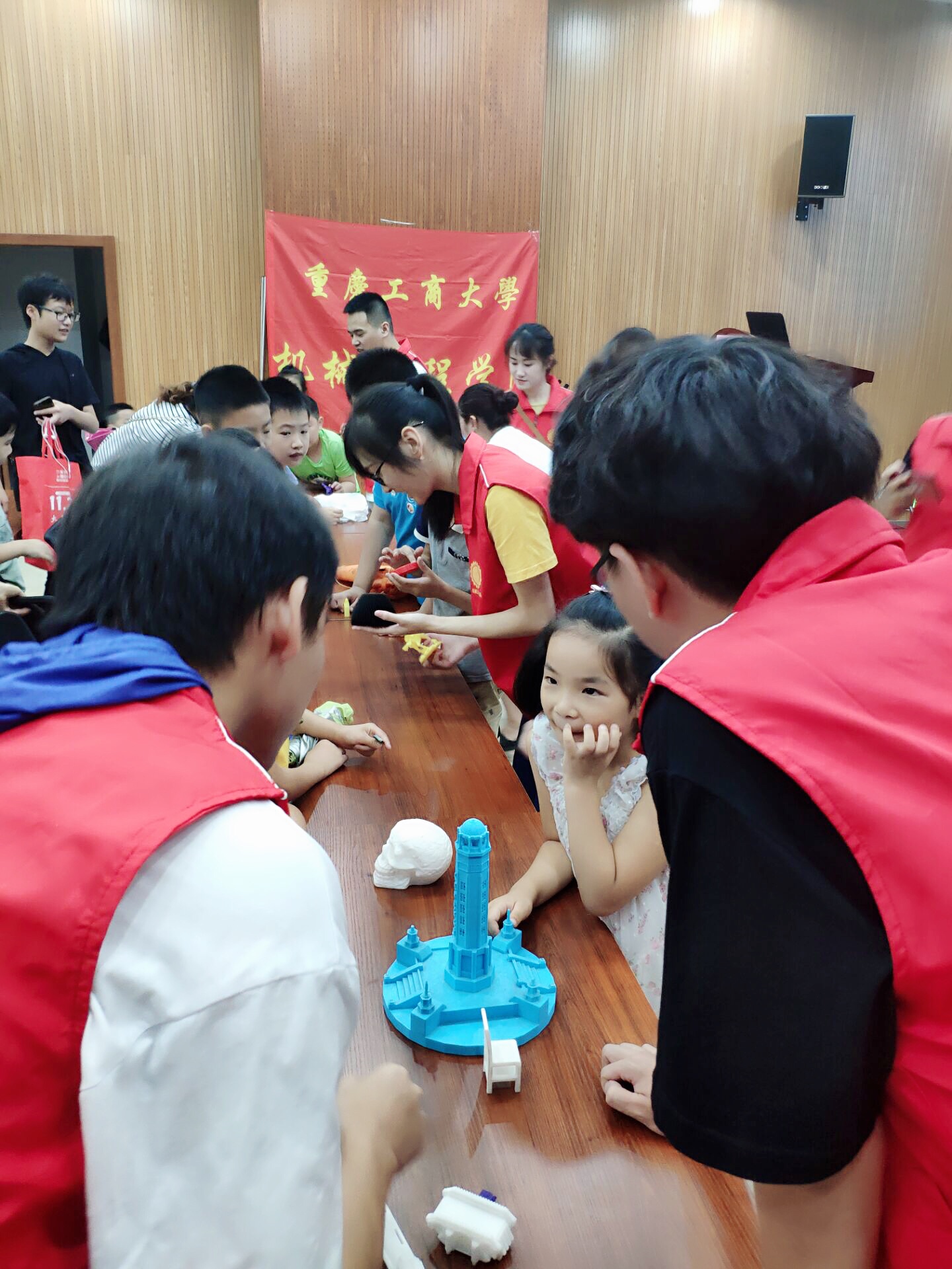 传统文化课堂上,通过传统节日、传统美德小故事等传统文化教学,培养小朋友对中国传统文化的热爱,让他们了解我们中华民族五千年的璀璨成果,增强他们的民族认同感和民族自豪感。绘画课堂上,小朋友们一笔一笔勾勒出自己心中的美好的家园,绿色、和平、幸福小朋友对家园画满祝福。手语舞课堂上,志愿者们融入真情教授《感恩的心》,让小朋友了解无声的世界,用心感受身边的人对自己的关心,并引导小朋友孝敬父母,学会感恩。与专业相结合的特色机器人课堂和3D打印课堂吸引了很多小朋友,在3D打印课堂中,志愿者们提前准备了由公司打印好的成品:重庆标志型建筑—解放碑和工商大学标志性建筑-图书馆等,利用多媒体结合实物生动的向小朋友们讲解3D打印技术。在趣味机器人课堂中,志愿者们现场操作公司智能机器人“NAO”,激发了小朋友对机器人技术的热情,也提升了老员工的专业技能。