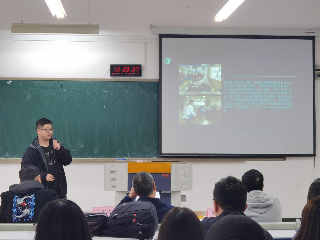本次比赛的决赛共有六组同学成功晋级,评委黄勇刚老师简要为参赛者们讲解了比赛流程与细则,并宣布比赛正式开始。展示过程由各个成员团结协作共同完成,每个小组派出一名主要讲解员,依次上台借助PPT、三维建模以及实物展示等多种方式展示自己的设计作品。评委老师们在展示完成后对参赛小组进行提问,从多面角度对他们的作品给予改良建议和鼓励。全部小组展示和答辩完成后,评委老师们再根据小组作品以及答辩的完成情况给出最终评分并进行排名。在此次比赛中涌现出了各种各样创意十足的作品,如餐具自动回收机,便捷式坐便器,自动捡球机等等。这些源自生活的设计作品,充分地体现出锻炼员工实践动手和科技创新能力的比赛目的。
