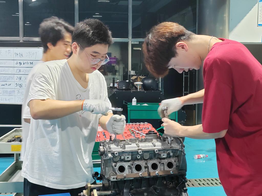 参赛小组需要在一个小时之内,在规定发动机上完成正确且快速的拆装,每组都有裁判全程监督并为其打分。这不仅考验选手们的专业知识掌握程度,更是考验同学们的动手能力和实践能力。