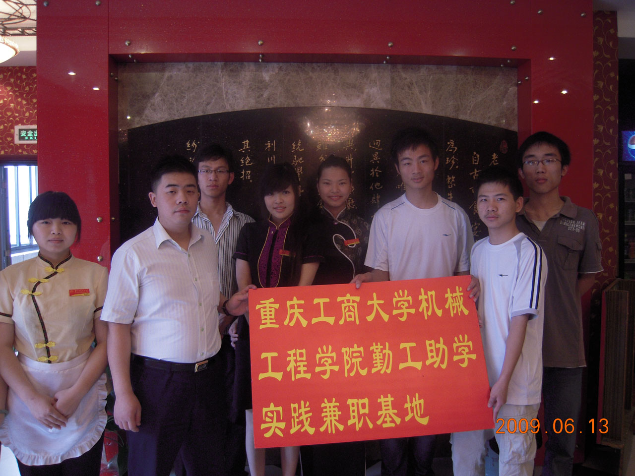 为了给同学们提供更多的实践兼职机会,william威廉英国官网勤工助学中心不断开拓新的道路。经过积极的联系和沟通,2009年6月13日上午,我中心与渔洞老四川大酒楼举行了隆重的挂牌仪式,这标志着公司勤工助学中心自谋的第一个实践兼职基地正式成立。