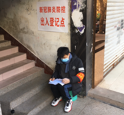 “在保护自己的同时,也要保护国家。”来自18级机电一班的李新洪同学,主动报名参加重庆市开州区汉丰街道金州社区疫情防控工作。从早上八点到下午五点,戴上口罩手套,冒着寒风坐在指定小区的门口对进出的小区成员有序地进行登记,并给他们发放通行证,以此来限制小区各家人户出行的人数和次数。在登记和发放通行证时会给小区业户们讲清楚通行证的作用以及现在疫情的情况,希望他们能够理解并支持工作进展。中午潦潦草草地解决了午饭继续回到岗位上进行登记。他说,要把握好每个时间段进出的人数,能够少出去一个人就是对国家做出了贡献,我的力量虽然微薄,但是我也要贡献给国家。相信国家,最终疫情一定会控制的。