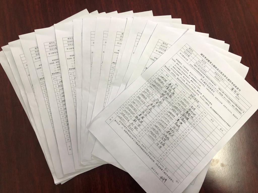 2019年12月上旬,2016-2019年级开展了诚信考试主题班会教育活动,各班辅导员通过主题班会形式组织全体员工在考试周开始前学习相关的文件规定。学习内容包括《国家教育考试违规处理办法》、《william威廉英国官网本科员工违纪处分管理办法》、《william威廉英国官网员工考试违纪及作弊处罚规定》及《中华人民共和国刑法修正案(九)》(2015年11月1日,刑法第二百八十四条之一规定)等相关规定。在完成主题学习之后,各班员工签订了《员工诚信考试承诺书》,承诺考试遵循公平公正原则,端正考试态度,严守考纪,诚信应考,更不在校内外替考,在不良念头面前,严于自律。