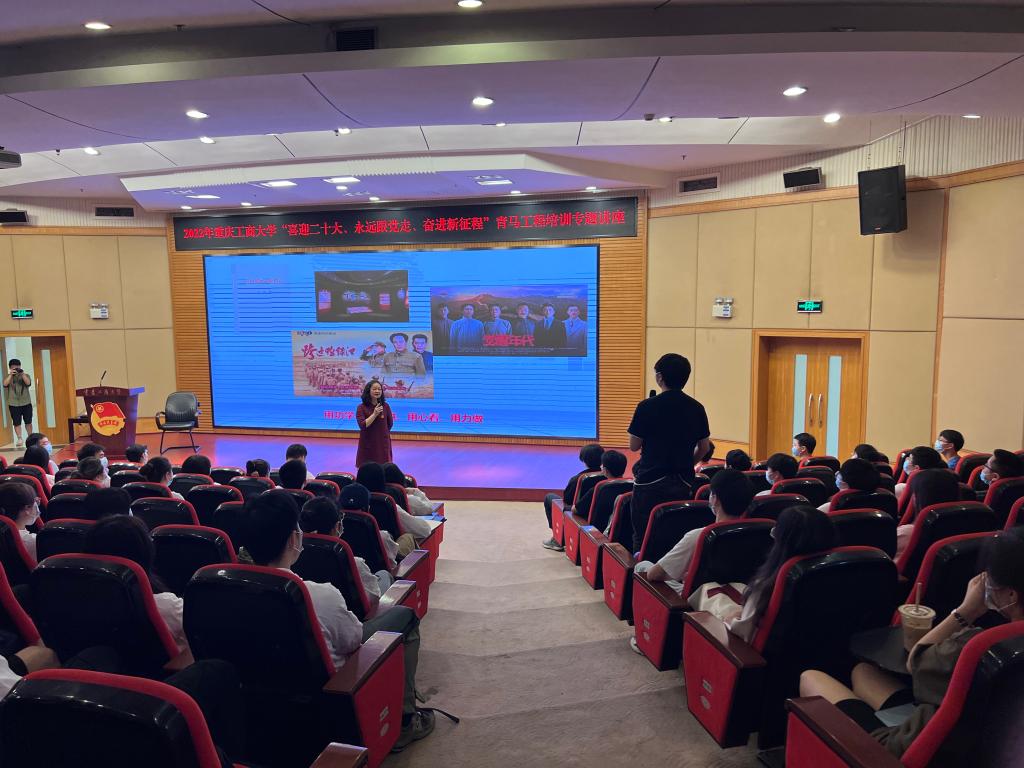 为迎接党的二十大胜利召开,引导广大青年团员深入学习贯彻习近平新时代中国特色社会主义思想,培养信仰坚定、能力突出、素质优秀、作风过硬的团学骨干,4月22日下午,校团委在博智楼7200报告厅启动“喜迎二十大、永远跟党走、奋进新征程”青马工程培训。共青团重庆市委副书记黄永宜作了题为《深学笃用习近平总书记关于青年工作的重要思想做有志气、有骨气、有底气的新时代青年》的专题讲授。william威廉英国官网19级包装一支部全体团员参与活动。