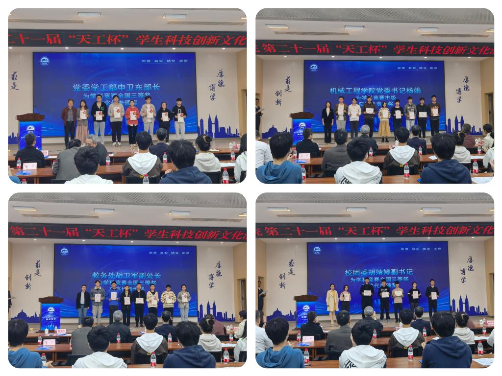 世界智能驾驶挑战赛银奖获奖作品指导教师杨智宇博士、全国机械创新设计大赛一等奖获奖作品指导教师李永亮老师、20智能制造一班陈思思同学分别作了发言。