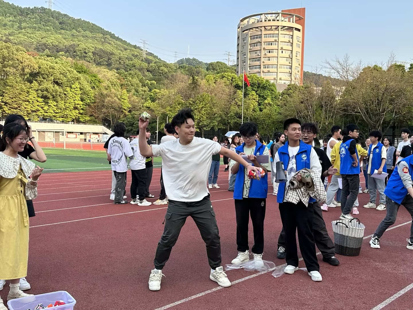 活动伊始,参赛选手有序入场,主持人杨越富介绍了活动流程以及比赛规则。各参赛同学自行组队,各组队伍在相互了解成员后,在工作人员引导下进行了抽签,依据组别进行了人员分工。随后,所有参赛队伍分别参加了“你丢我接”团队赛以及“让沙包飞”团队赛。在紧张又激烈地比赛环节结束后,依据各组比赛的成绩分数,确定了各个队伍的比赛积分。活动最后,主持人统计并宣布了各参赛队伍的比赛名次。“让沙包飞”趣味运动会圆满结束。