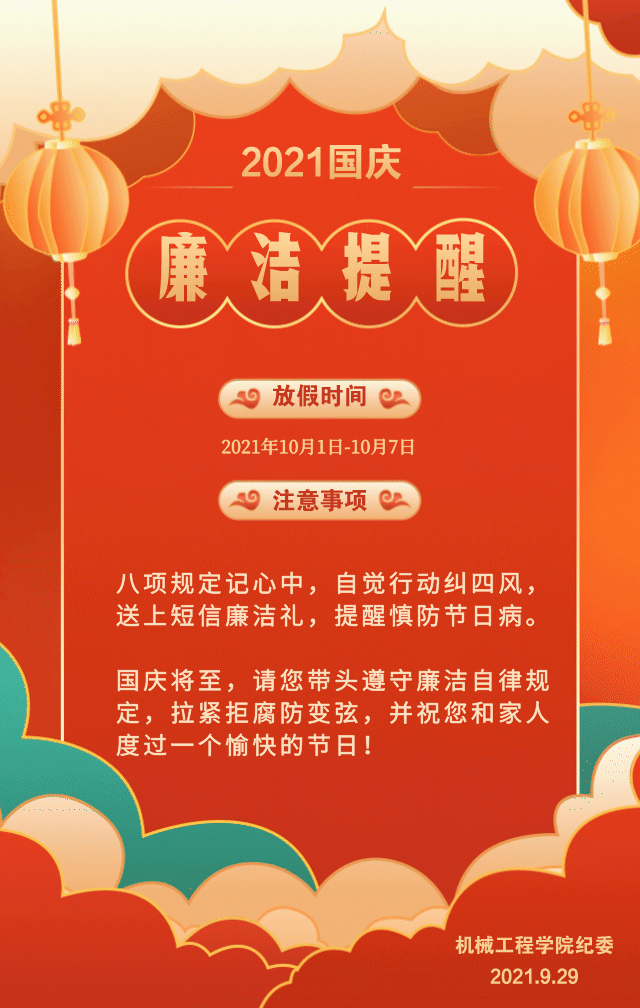 2021国庆节廉洁提醒