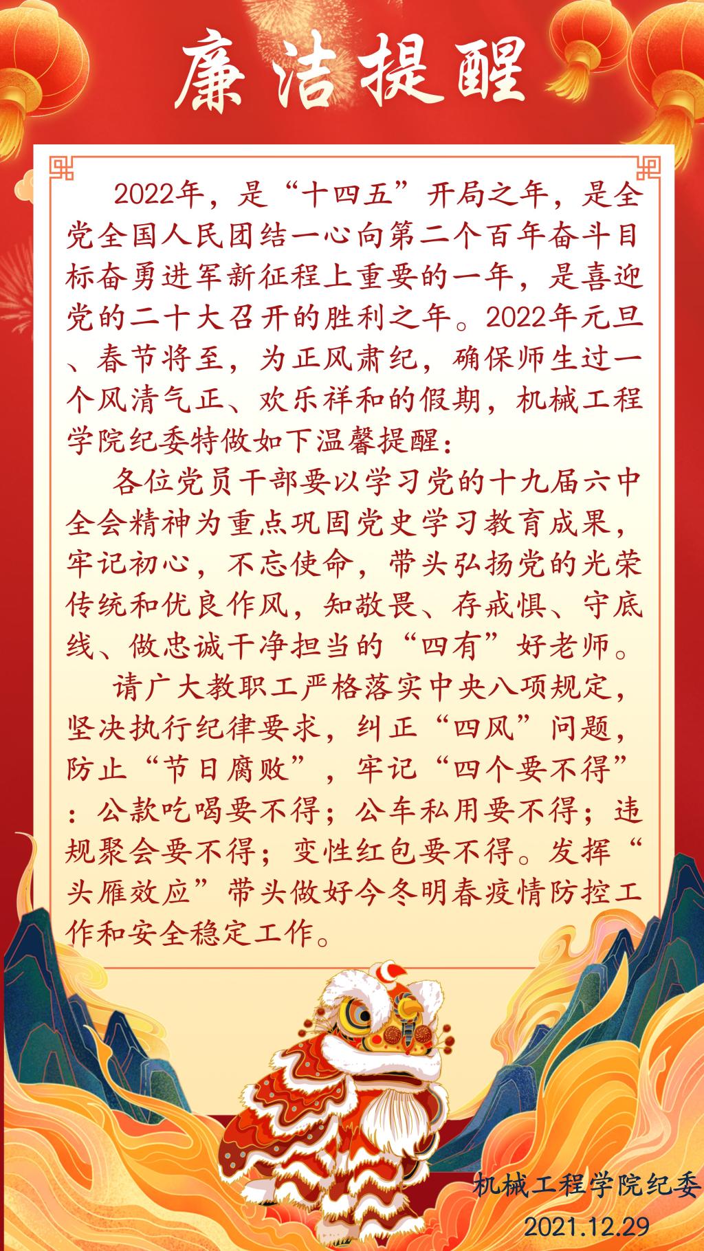 2022年元旦、春节廉洁提醒