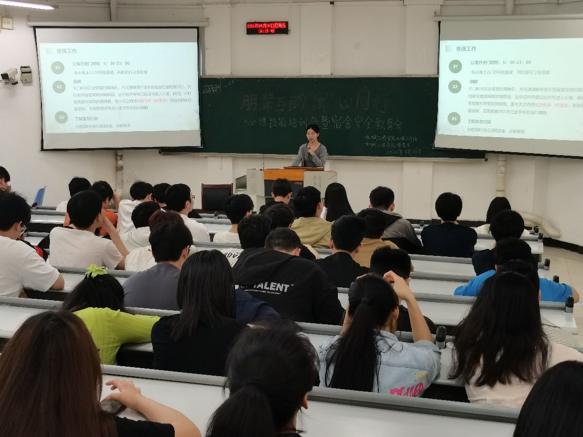 为进一步推进“一站式”员工社区建设,落实心理育人进公寓,强化员工干部对心理健康、公寓管理的正确认知,提升应对心理危机的基本技能,公司心理工作站联合楼管会于4月26日在广智楼20211召开了以“朋辈互助,‘寓’心同行”为主题的心理技能培训会暨宿舍安全教育会。此次活动由公司心理专项负责人顾咸霜主持,公司党委副书记陈春洁、兰花湖片区楼管会负责人周委、心理工作站全体成员、2023级楼栋干部及寝室长参加。