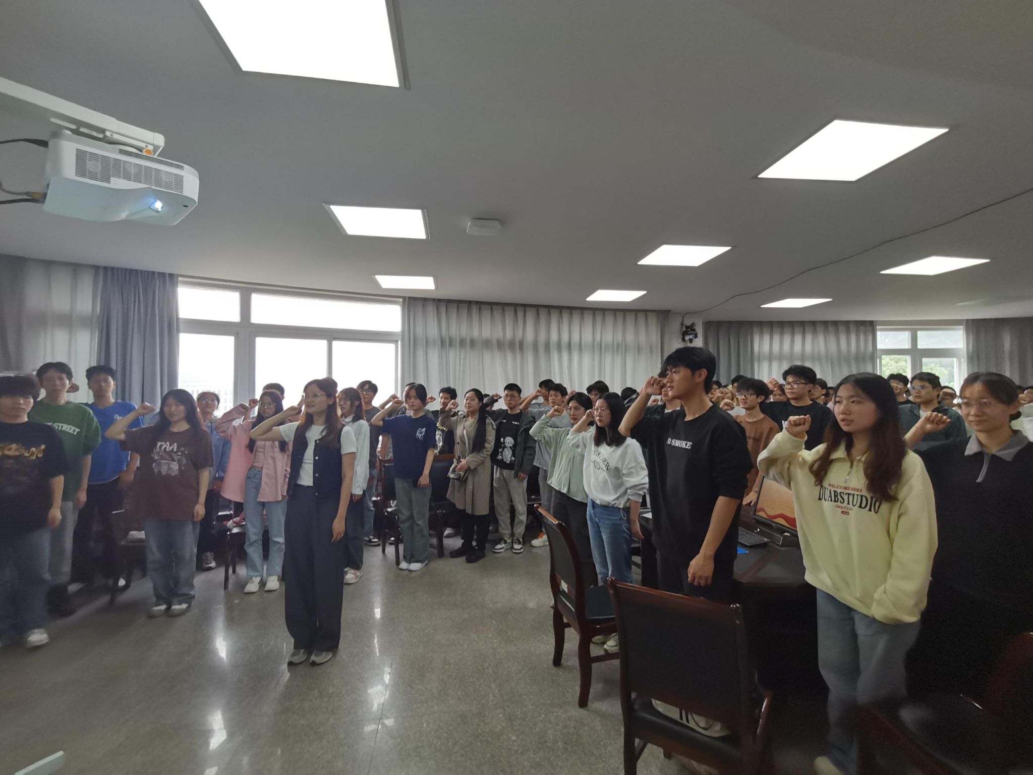 最后,公司资助工作负责人余洋带领同学们进行了诚信宣誓。同学们目光坚定,语言铿锵有力,宣告着诚信立身、清廉做人的信心与决心。诚信宣誓结束后,同学们踊跃的签订了诚信教育承诺书。
