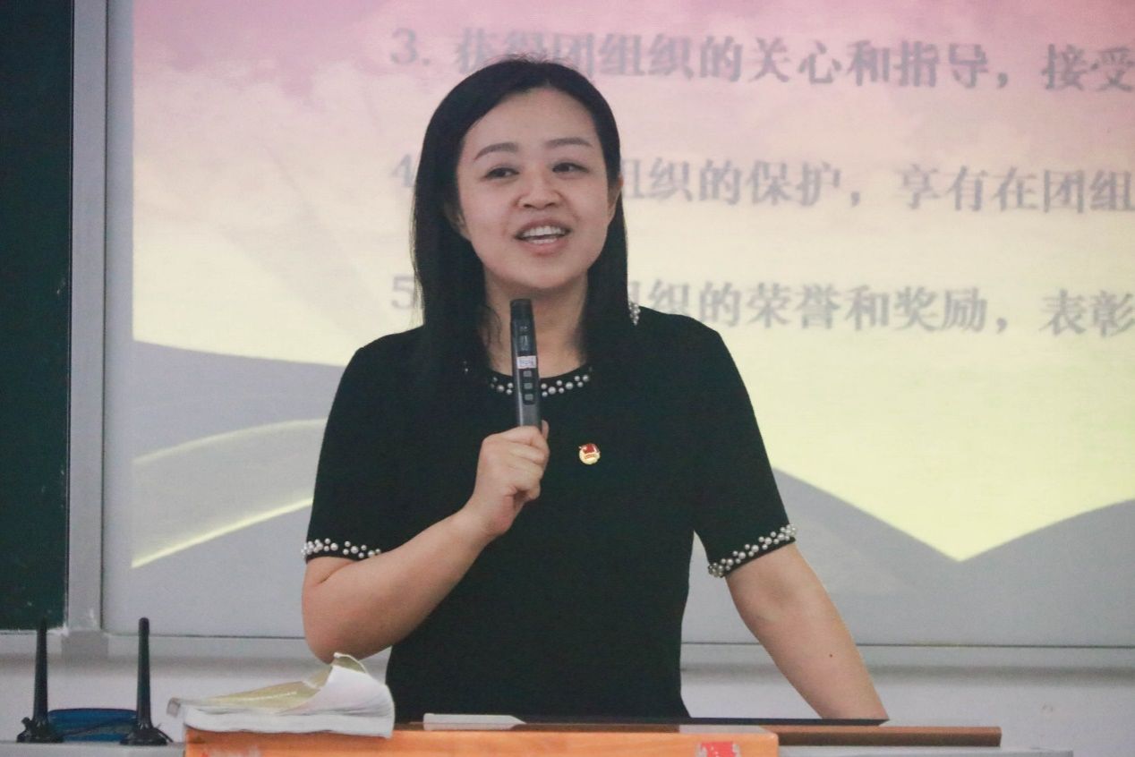 最后,刘静老师发表了热情洋溢的讲话。她首先向新团员们表示了热烈的祝贺,并对他们提出了殷切的期望。她强调,作为共青团员,新团员们要时刻牢记自己的使命和责任,要在学习、工作、生活中发挥模范带头作用,带动身边的同学共同进步。同时,她也希望新团员们能够珍惜这个机会,努力学习,不断提升自己的综合素质和能力水平,为公司和团组织的发展贡献自己的青春和力量。