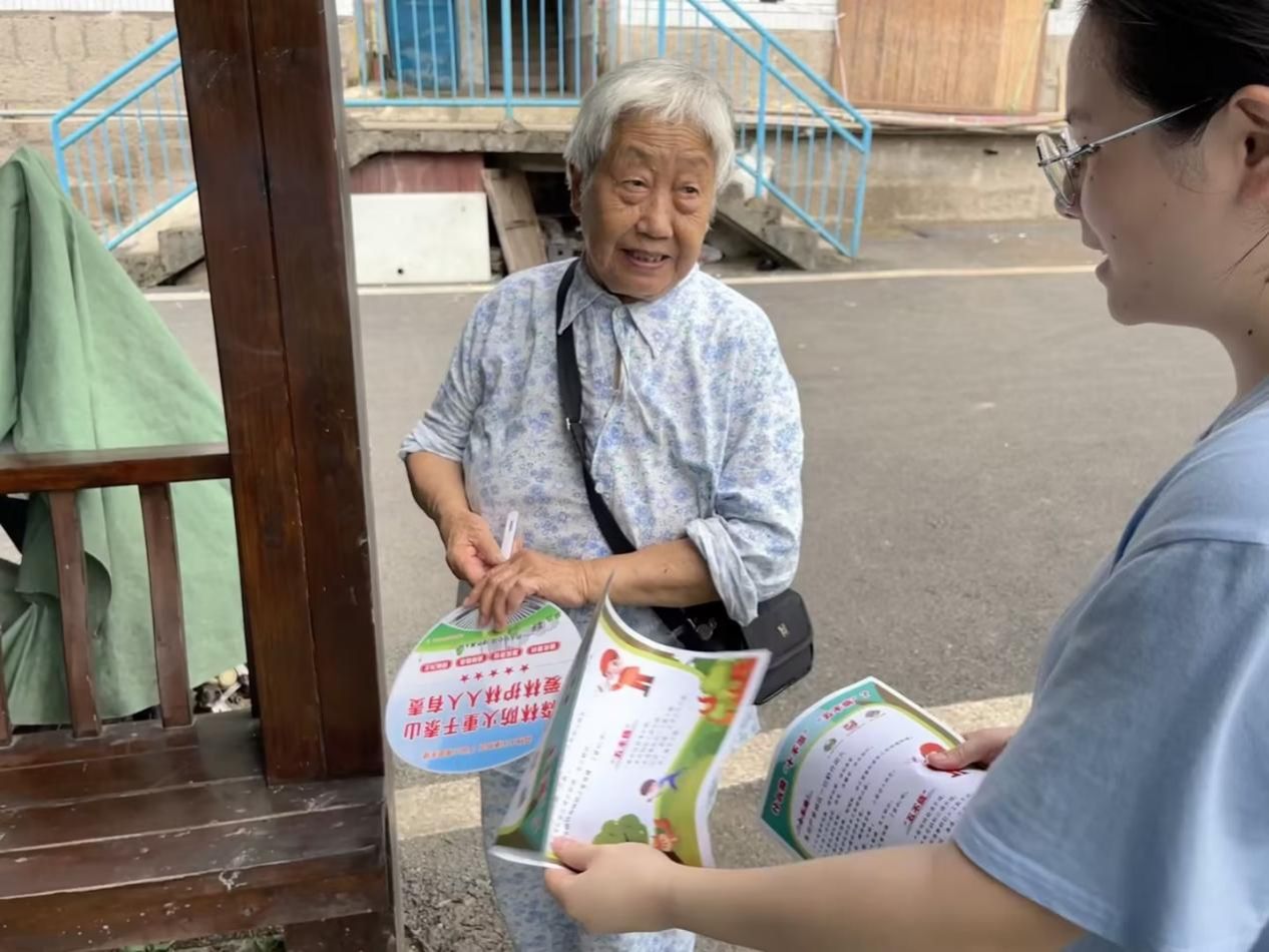7月8日,阳光炽热却挡不住实践团成员们满腔的热情与坚定的责任感。他们如同一支支绿色的使者,踏入双河口社区,开启了这场意义非凡的森林防火宣传之旅。队员们迅速分组,化身森林防火知识的传播者,穿梭于社区的每个角落,用一张张精心设计的宣传手册、一把把印着防火小贴士的扇子,为居民们送去清凉与知识。