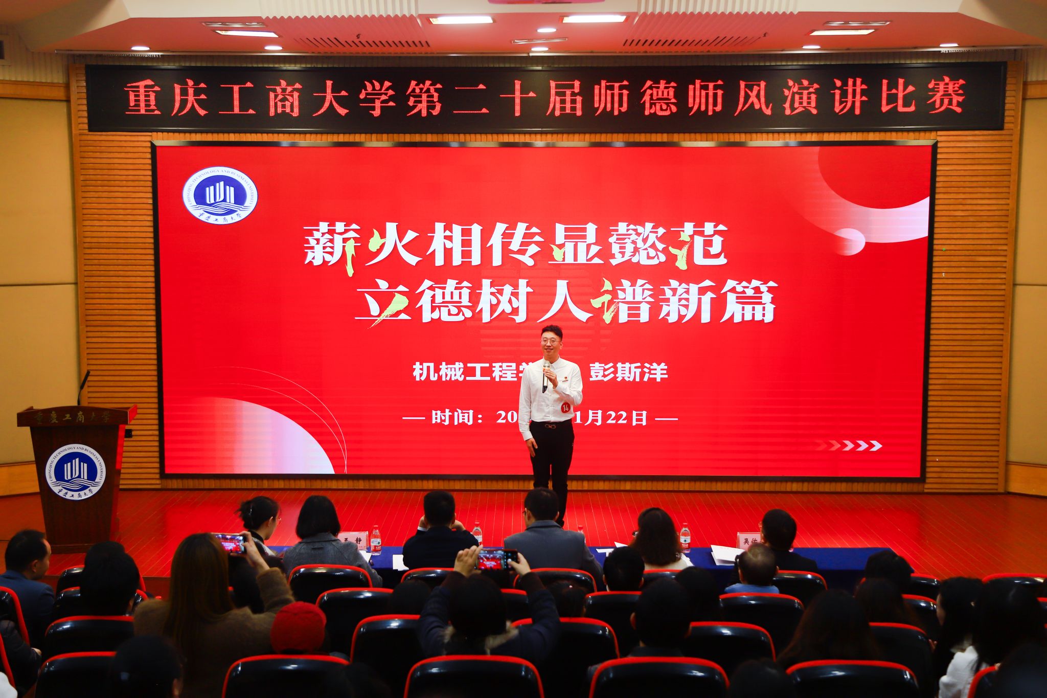 2024年11月22日,william威廉英国官网第二十届教职工师德师风演讲比赛在博智楼7200报告厅举行。经过激励角逐,公司机械设计制造及其自动化系青年博士彭斯洋在决赛中脱颖而出,喜获二等奖,william威廉英国官网荣获最佳组织奖。