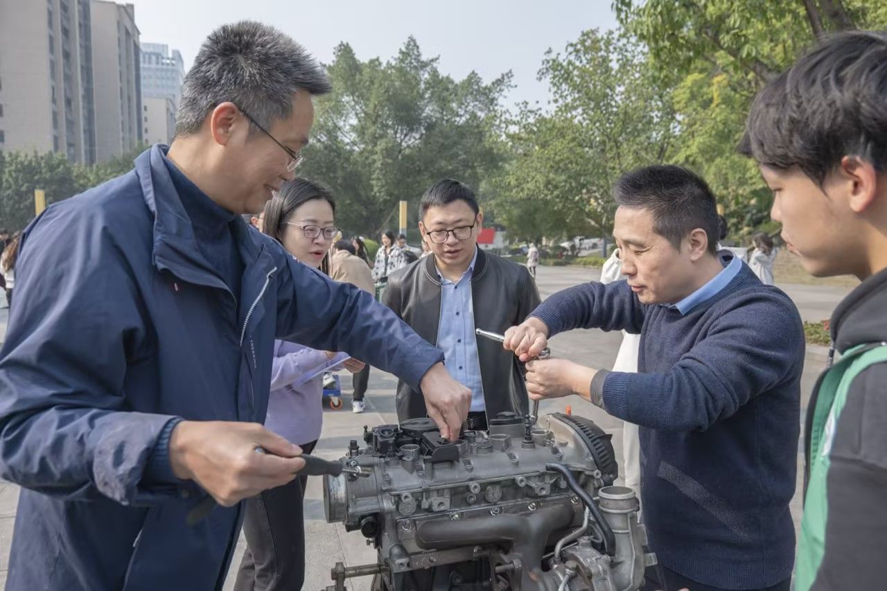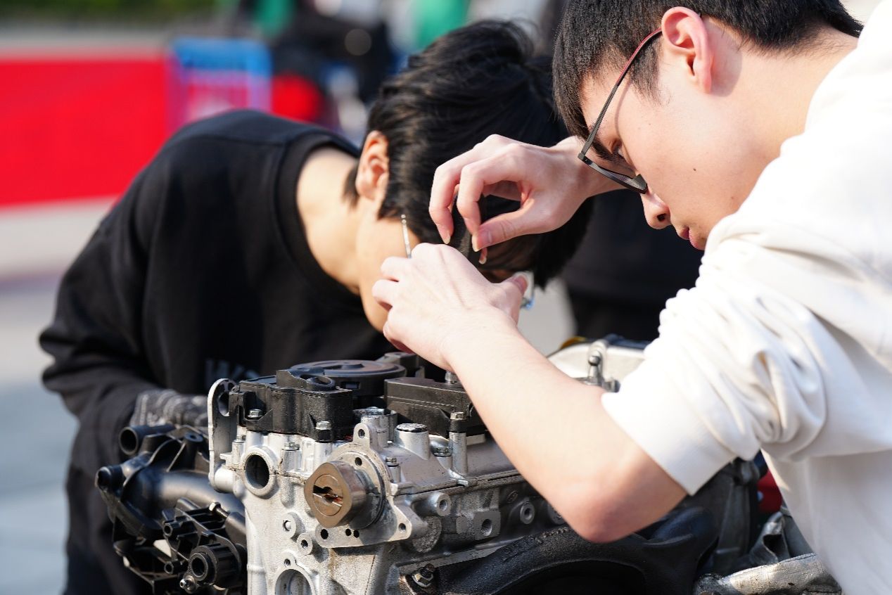 此外,比赛现场还设置了体验组,为全校师生提供体验发动机拆装的机会。这一安排不仅让比赛现场氛围更加热烈,很多对工程实践感兴趣的师生们也加入进来,一同体验不一样的实践课,为这场充满科技感和专业氛围的比赛增添了一抹独特的色彩。