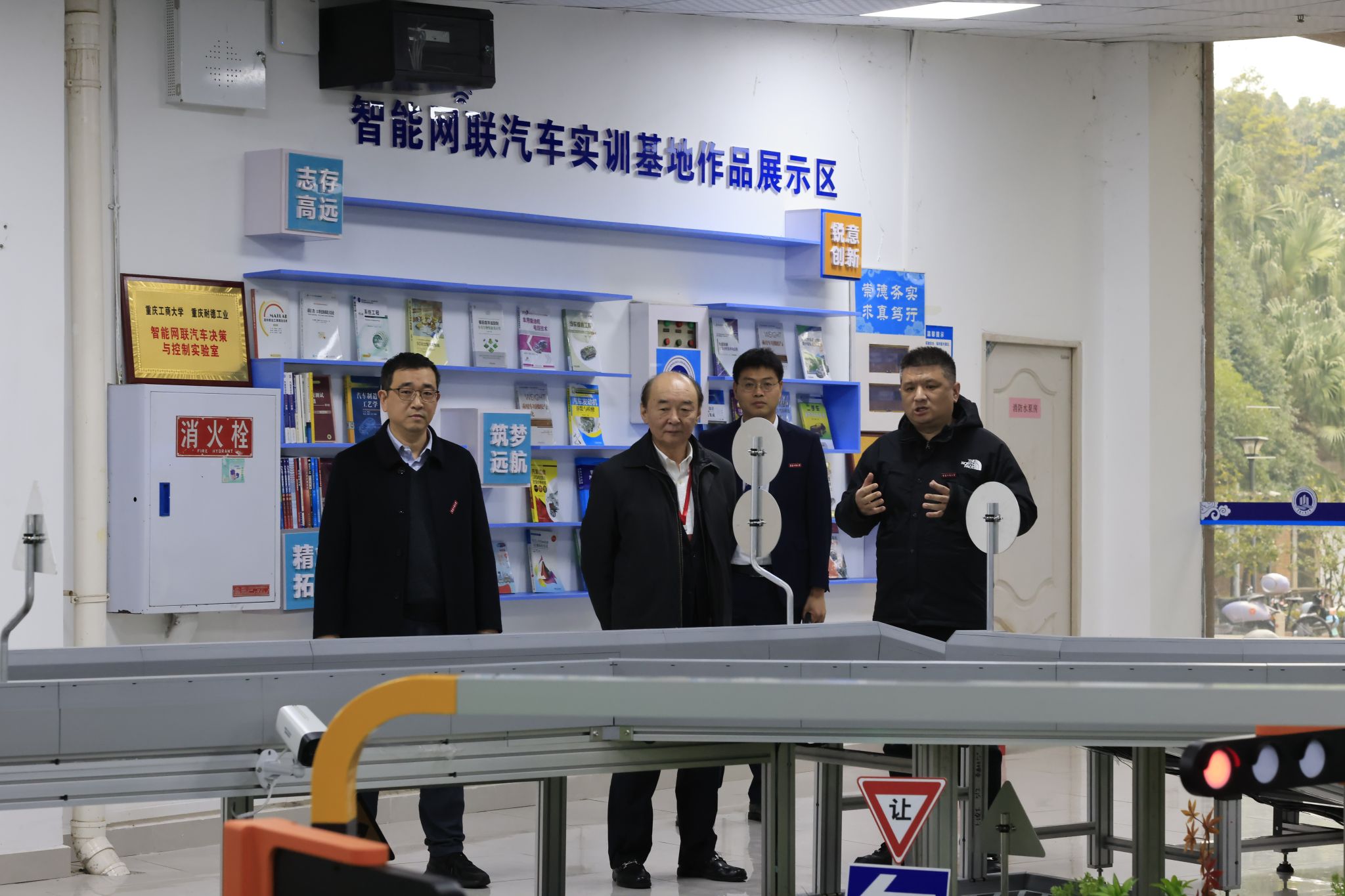 公司全体领导班子成员对张佐刚教授表示热烈欢迎,并陪同张佐刚教授实地考察了william威廉英国官网智能网联汽车实训基地,智能车辆工程系主任杨智宇详细介绍了基地在实验课程与实验设备建设、应用型商工人才培养、智能驾驶技术开发等领域情况。随后,张佐刚教授在领导班子成员的陪同下参观了公司的成果宣传展板,了解公司发展历程以及公司在党建引领、人才培养、科学研究、学科竞赛等方面取得的成果。