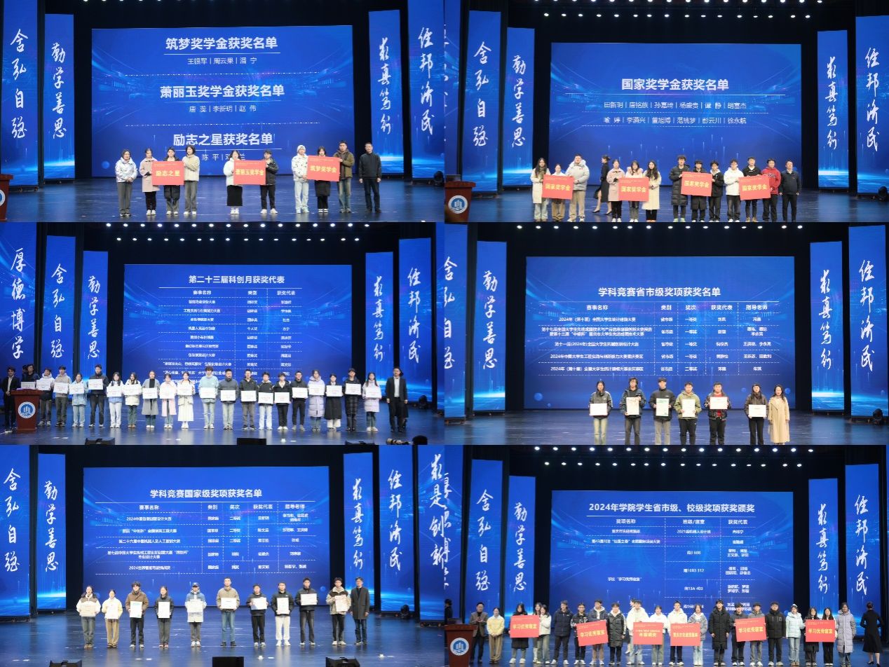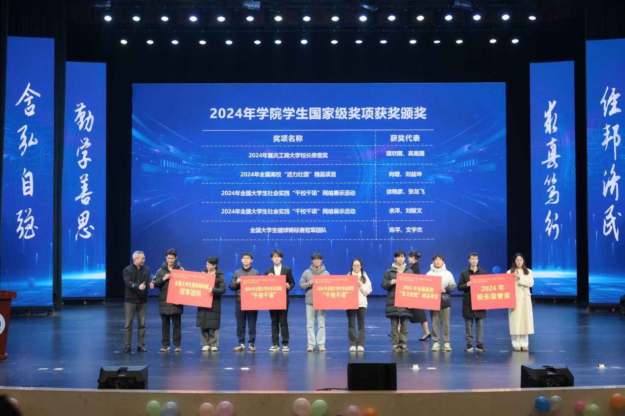 与会各位嘉宾分别为公司2024年获得“非带帽下达”的获奖集体和团队、个人进行了颁奖。包括获得国家级、省市级学科竞赛的员工和团队;全国百强社团、千校千项、董事长荣誉奖、全国老员工毽球冠军团队等;以及重庆市先进班集体、学习优秀寝室、国家奖学金获得者、筑梦奖学金获得者、励志之星、萧丽玉奖学金获得者等;今年的五四红旗团委、优秀员工会、共青团宣传工作先进、优秀青年志愿者服务队等等。随后,教师代表杨智宇老师、学科竞赛获奖员工代表章俊杰同学和千校千项获奖班级的班长余泽分别作分享发言。