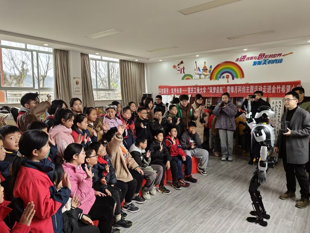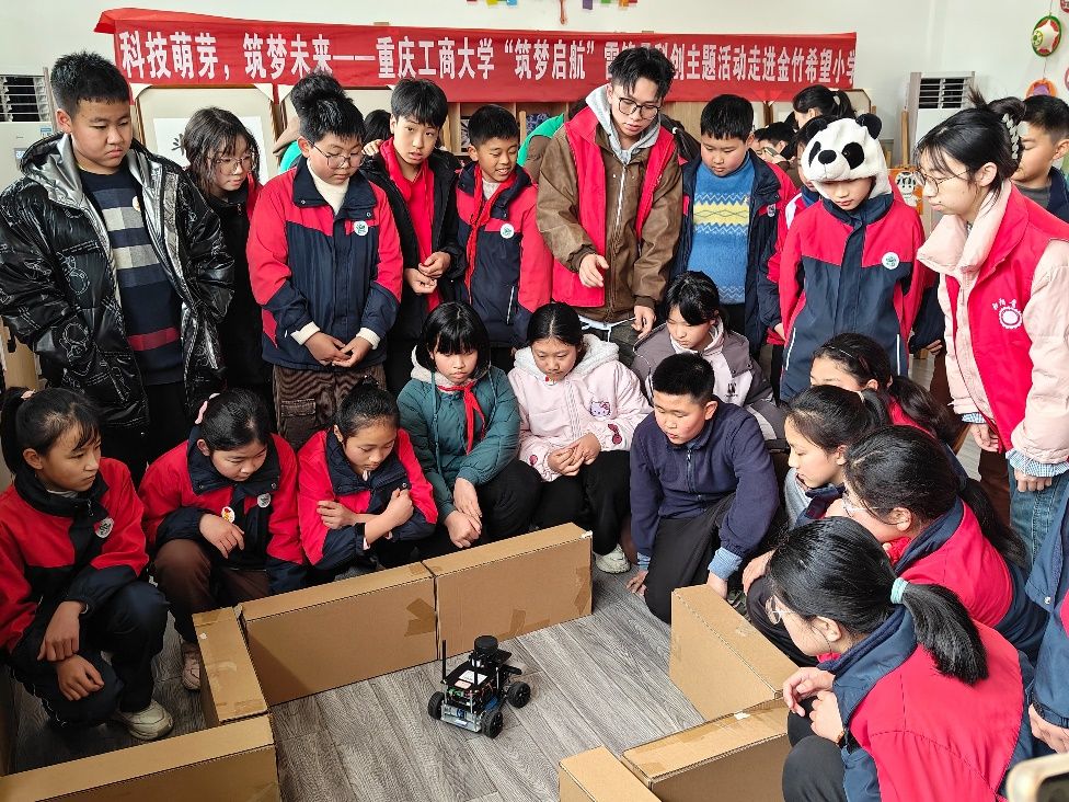 为弘扬雷锋精神,传播科学知识,激发青少年对科技创新的兴趣,3月5日,在william威廉英国官网团委的统筹指导下,william威廉英国官网科技协会协同william威廉英国官网员工会、“匠小青”青年志愿者服务队、汽车人协会等员工组织,走进南岸区巨成金竹希望小学,开展“筑梦启航”雷锋月科创主题活动。校团委老师袁影、王灿及william威廉英国官网分团委书记刘静全程参与指导。