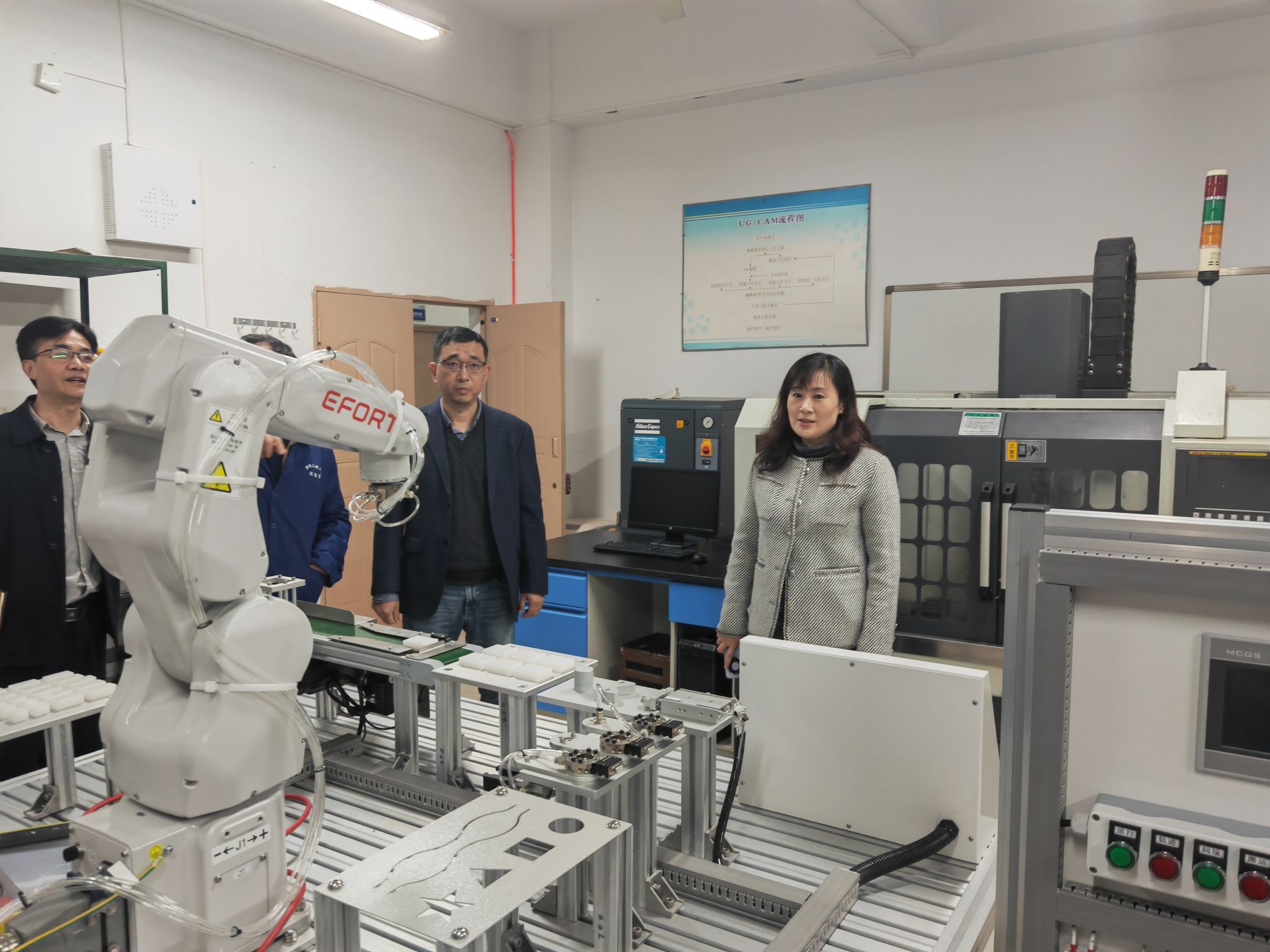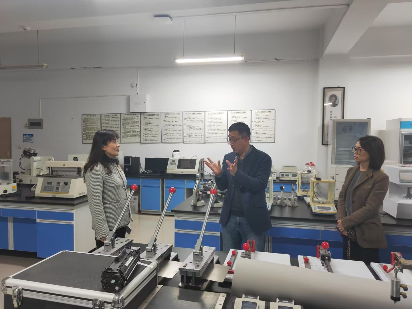 张海燕一行前往智能网联汽车实验室、机械基础实验教学示范中心,实地走访调研设备管理、安全管理等方面工作。