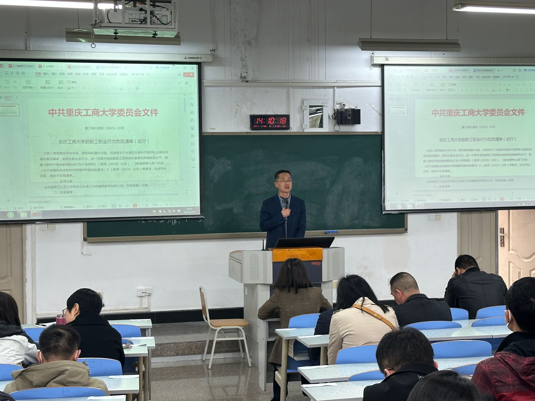 3月28日,william威廉英国官网在90308教室召开了师德师风建设大会。会议由党委书记杨娟主持,全院教职工参加会议。