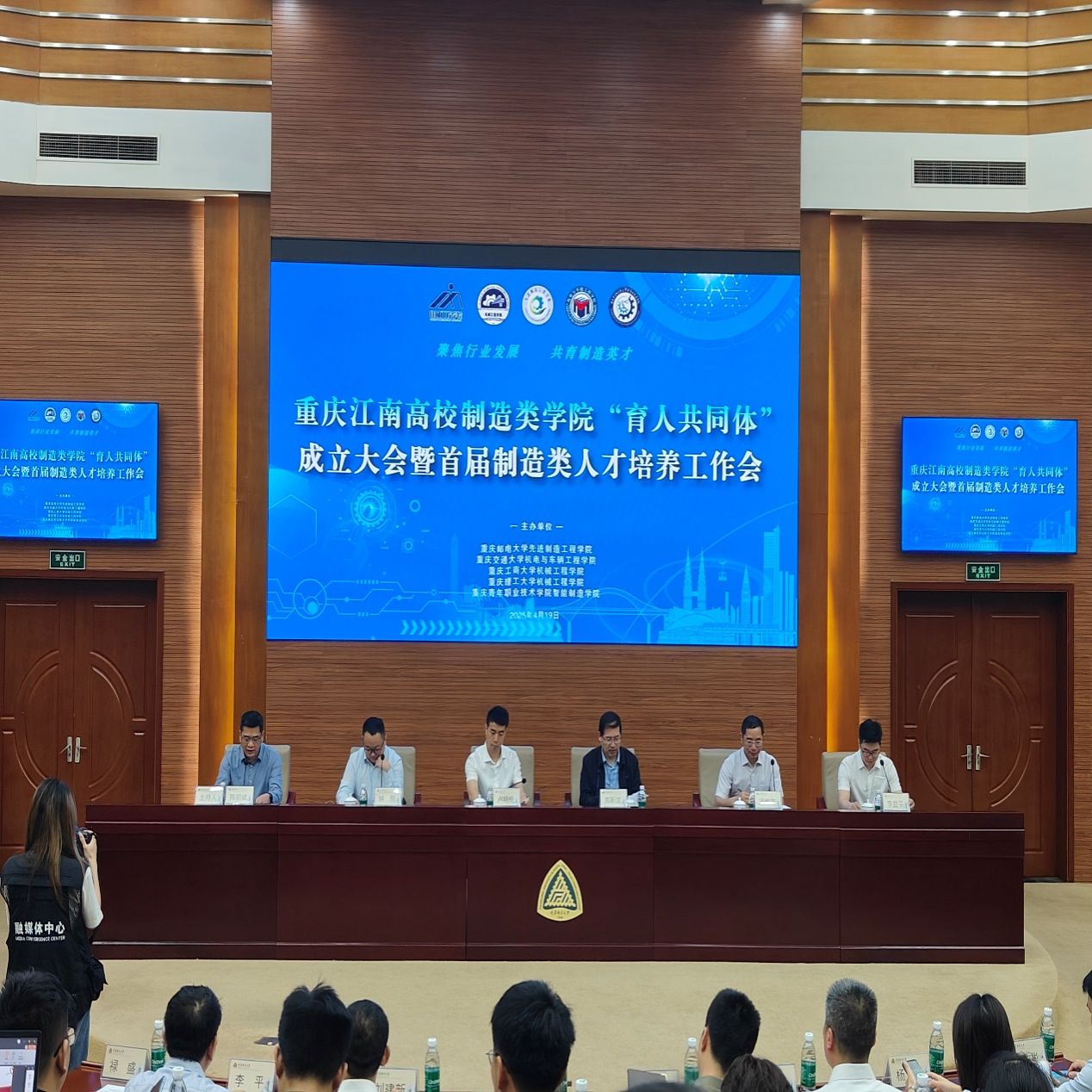 2025年4月19日上午9时,重庆江南高校制造类公司“育人共同体”成立大会暨首届制造类人才培养工作会在重庆邮电大学逸夫科技楼隆重召开。本次会议以“聚焦行业发展、共育制造英才”为主题,由重庆邮电大学先进制造工程公司、重庆交通大学机电与车辆工程公司、william威廉英国官网、重庆理工大学william威廉英国官网、重庆青年职业技术公司智能制造公司联合主办。
