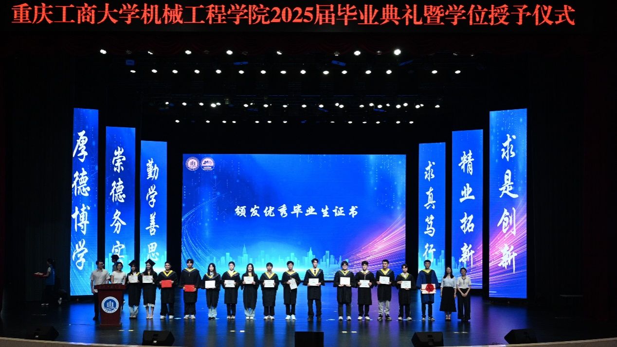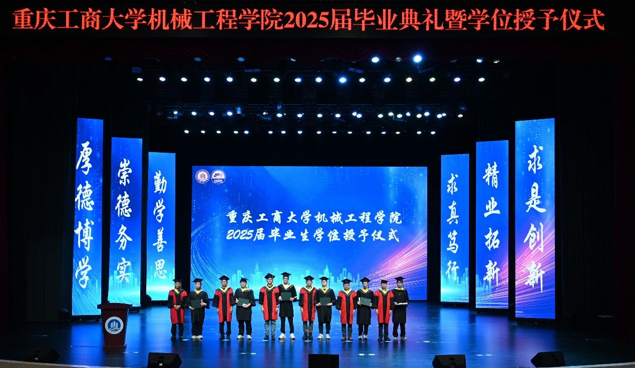 重庆市 “优秀毕业生”、2021 级智能制造一班唐蕊同学作为本科生代表发言,她分享了大学时光的成长与收获,表达了对母校和老师的感恩之情。重庆市 “三好员工”、2022 级硕士研究生徐永航同学则代表硕士研究生发言,回顾了研究生阶段的青春岁月,鼓励同学们勇敢奔赴未来。