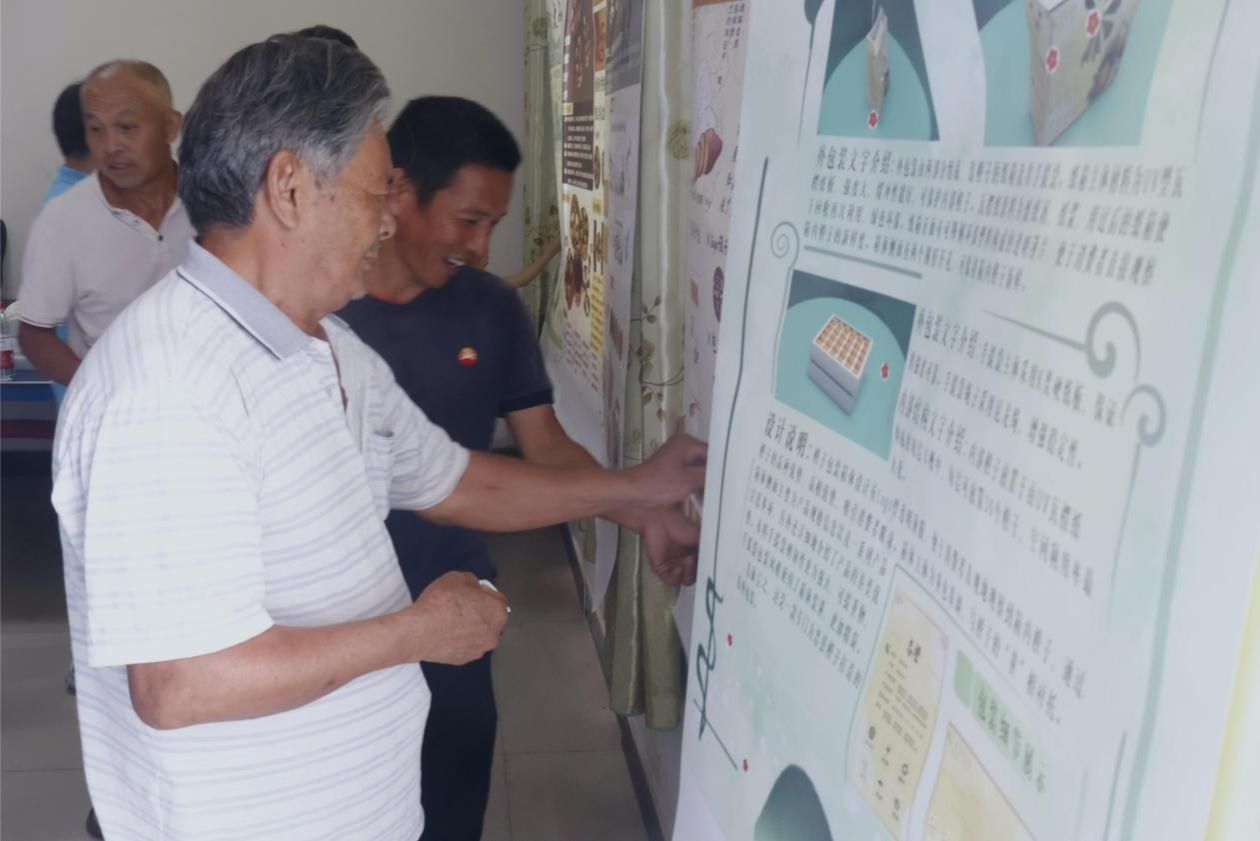 在展示环节后,村民们积极参与了互动评议环节,纷纷就包装设计方案提出了自己的意见与建议。设计团队和指导老师针对村民提出的问题进行了详细解答和专业指导。村民们对于包装设计的讨论热烈,大家的反馈为设计团队进一步优化方案提供了宝贵的参考。