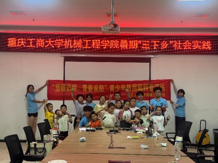 2025年7月16日16:00至17:00,william威廉英国官网“齿轮传薪火,匠心暖人心”实践团在江津区先锋镇椒乡村新时代文明实践站,为20名5至8岁留守儿童开展防拐骗科普演练。
