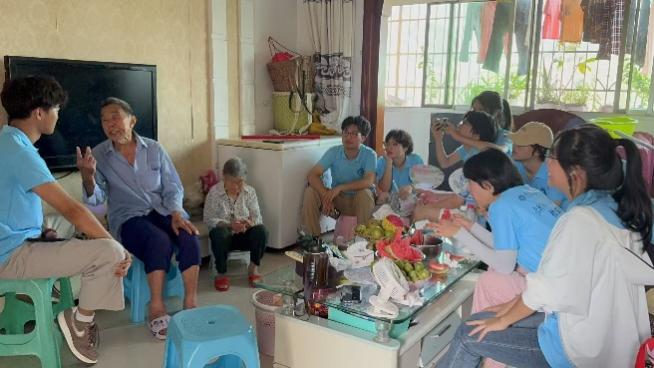 经过前期 “家园焕新” 行动,杨老爷爷的客厅已变得整洁明亮:擦拭干净的旧木桌摆在中央,桌上的军功章在阳光下泛着光,墙角的书架整齐排列着各类书籍。老人特意带上了勋章,胸前的勋章明亮耀眼。实践团的同学们围坐在老人身边,手里拿着笔记本,期待着聆听那段尘封的记忆。此次座谈并非单向的 “听故事”,而是提前根据老人的经历梳理了 “战役记忆”“战地生活”“退伍初心” 三个话题方向,深入挖掘有传承意义的故事。