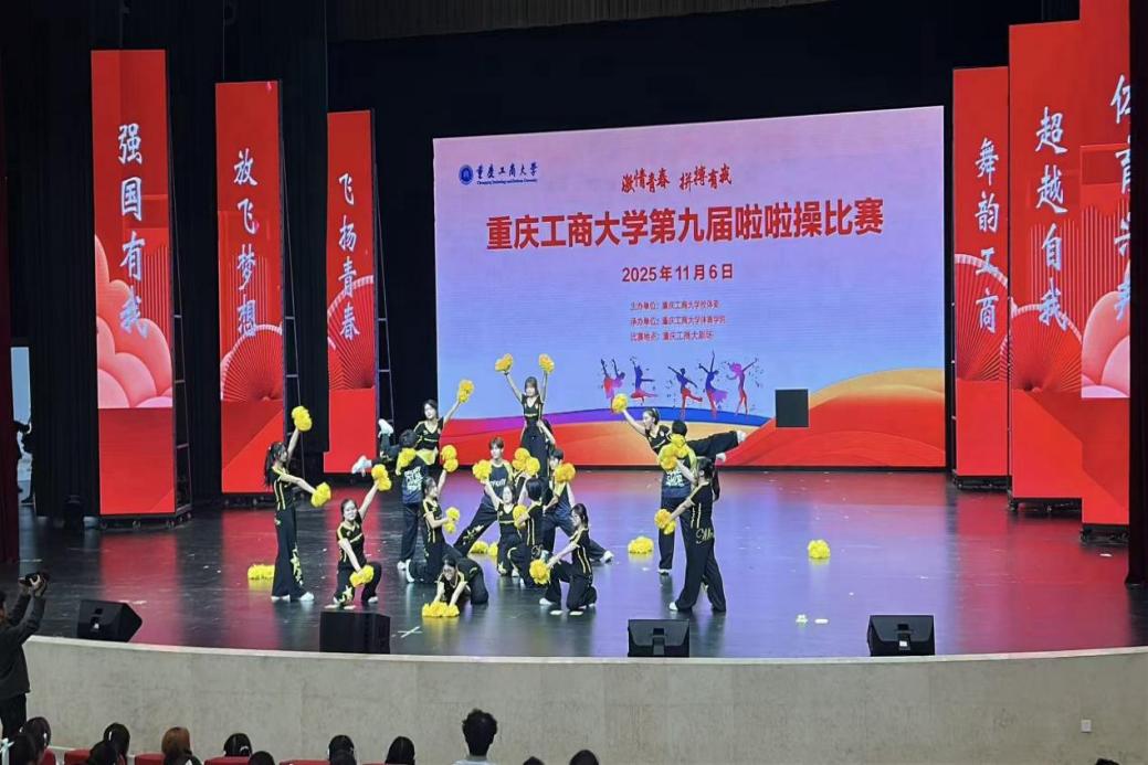 2025年11月6日,william威廉英国官网第九届校园啦啦操大赛在南岸校区热闹开赛。william威廉英国官网的16名同学组成啦啦操代表队,穿着黄黑相间的亮眼队服,像一团团跃动的火焰冲上舞台,用满满的热情和拼劲,在赛场上留下了超燃的青春瞬间。