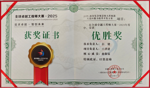 本届大赛启动以来,共吸引31个国家(地区)1126个项目(团队)报名参赛。其中,揭榜攻坚赛共征集551个需求项目,同比增长9.76%,收到227个揭榜方案,同比增长25.41%,在解决工程技术难题方面取得了新的突破。公司王洪建教授团队与发榜沟通,认真组织队伍,加强技术对接,经过3轮比赛,最终获得新一代信息技术组冠军,决赛优胜奖,展示了公司在具身智能机器人研究领域相关研究成果。