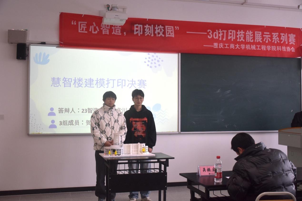 活动现场,同学们围绕“九教”建筑特色,通过3D建模软件精细雕琢设计方案,从建筑外观还原到创意化改造,将对校园空间的理解融入数字模型。经前期打印制作,一件件承载校园记忆与创新巧思的3D作品精彩呈现。答辩环节中,参赛选手结合设计理念、技术实现路径展开讲解,从建模思路到打印参数优化,展现对3D打印全流程的扎实掌握。评委团围绕主题契合度、创意设计感、模型结构可实现性及视觉美学效果等核心维度,与参赛选手展开深入交流,既肯定了作品的创新亮点,也针对模型优化、技术落地等方面提出了专业且具指导性的建议。
