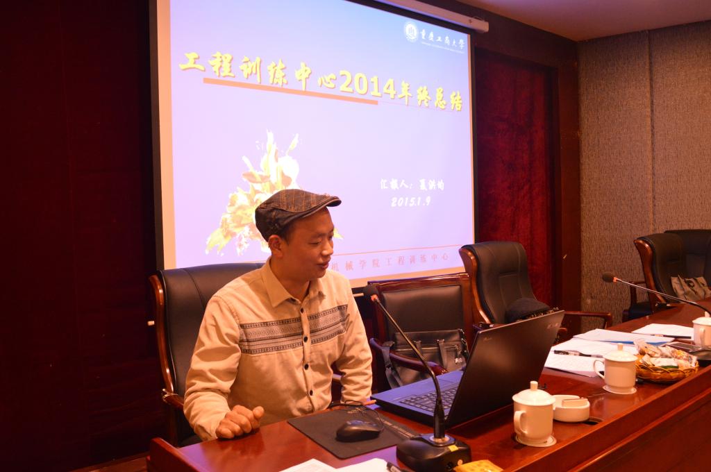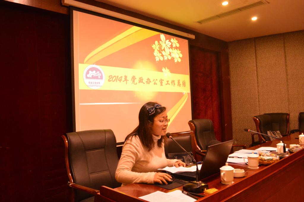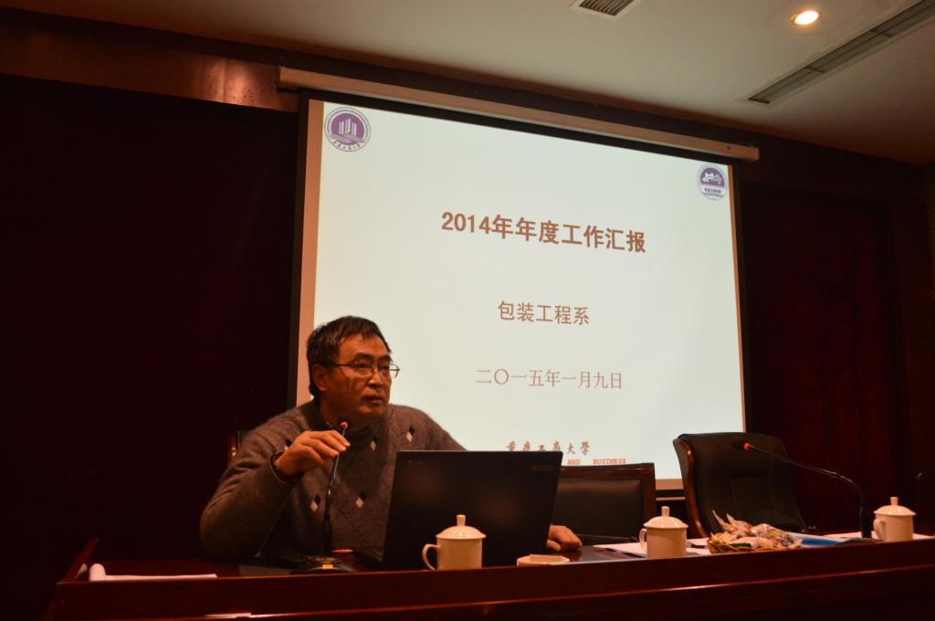 机械系主任谭伟老师、包装系主任唐全波老师、实验室主任马斌老师、工程训练中心主任夏洪均老师,就各系2014年工作开展情况作了总结。党政办公室主任刘静老师、教务办公室主任邱全奎老师、学团办公室主任黄杰渝老师就各行政办公室2014年的工作开展情况作了汇报。