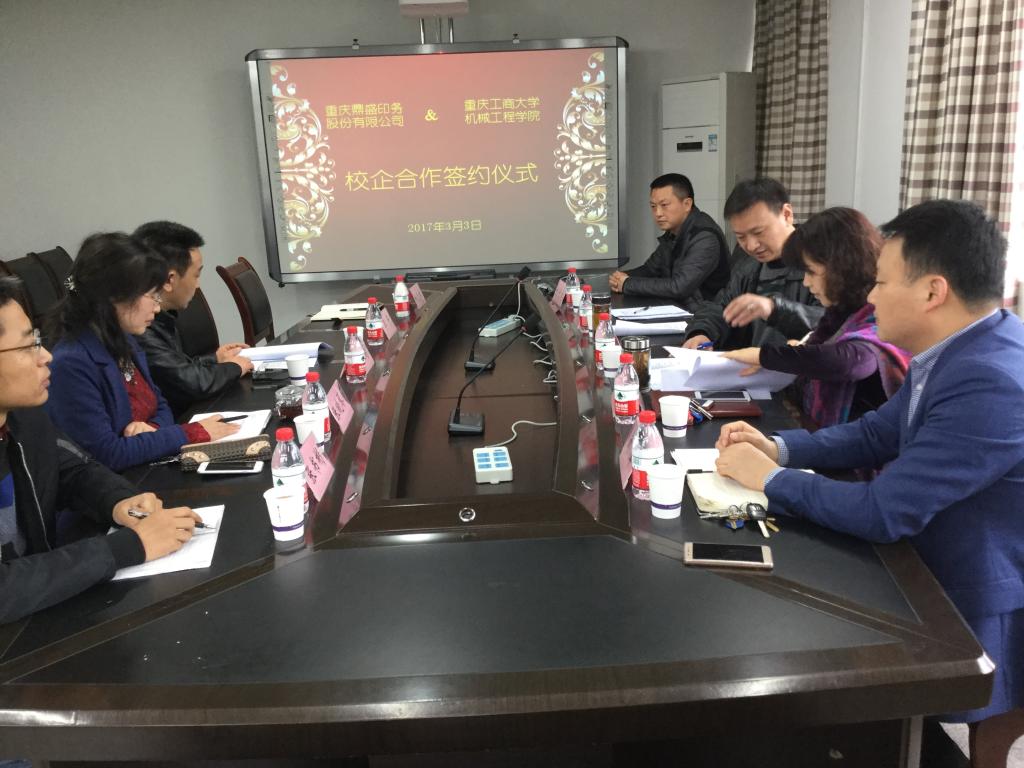 2017年4月10日,重庆鼎盛印务股份有限公司总经理邓贤鹏、综合部经理朱亚玲到william威廉英国官网洽谈产学研合作事宜并与公司签署了产学研合作协议书。公司经理杜力、党总支书记刘洋等参与了合作交流洽谈。
