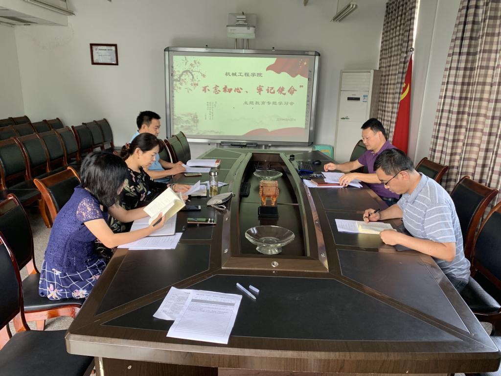 9月20日下午,机械公司开展第二次集中研讨学习,公司院领导、支部书记参加了本次学习。刘洋书记领学《习近平总书记在中央政治局第十五次集体学习时的重要讲话》、《习近平总书记在中央党校中青年干部培训班开班式上的讲话》、《关于开展第二批“不忘初心、牢记使命”主题教育的指导意见》,各院领导和支部书记结合自己的工作进行了交流发言。