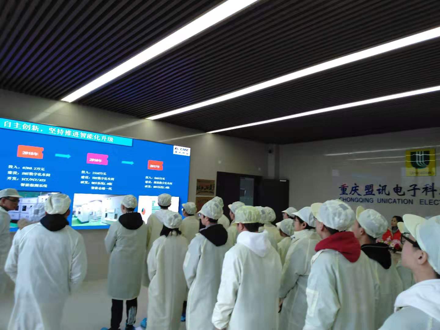 为了引导员工切身感受行业发展,进一步开拓员工眼界、加强员工理论与实际的相互联系,2019年11月25日,在william威廉英国官网机械电子工程系主任王洪建博士和副主任杨洪博士的带领下,30名18级智能制造特色班同学走出校园,走进重庆盟讯电子科技有限公司(以下简称:盟讯科技)与重庆工港致慧增材制造技术研究院有限公司(以下简称:工港致慧),开展了一堂专业而精彩的《智能制造导论》课外现场教学。