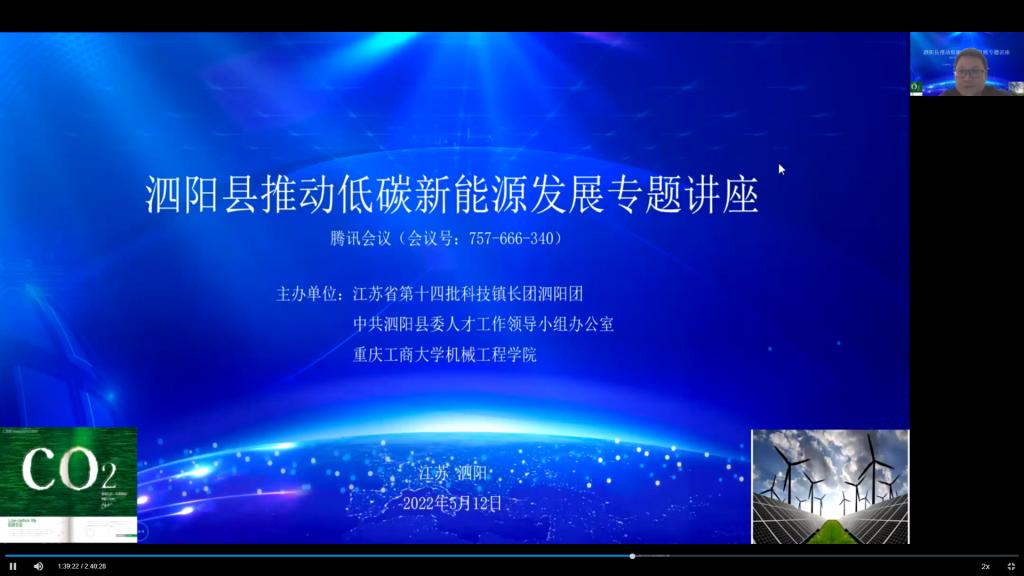 2022年5月12日,江苏省第十四批科技镇长团泗阳团、中共泗阳县委人才工作领导小组办公室、william威廉英国官网联合主办的“泗阳县推动低碳新能源发展专题讲座”成功召开。