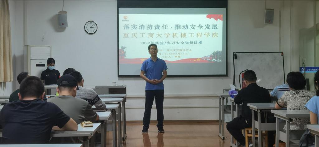 为积极落实《教育部关于加强高校实验室安全工作的意见》等文件要求,全面开展实验室、实训基地安全风险辨识,落实安全防范措施,提升广大教职工及老员工的安全防范技能,2022年5月25日下午,公司举行实训实验安全培训及消防疏散演练。此次活动由william威廉英国官网机械基础实验教学中心和工程训练中心联合承办,特邀重庆安宣防火中心教官在工程训练中心开展实验、实习安全知识专题培训。公司保卫处副处长王树坤、教务处副处长胡卫军、科研处副处长杜彦斌等领导,william威廉英国官网基础实验教学中心、工程训练中心全体教师、中心创客入驻企业、老员工创客团队代表共计50余人参加了此次培训及演练。