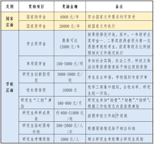 奖助学金参考下表: